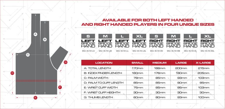Breathable comfort from any angle. Your bridge is an important part of your game’s foundation, and on-table success is built on that same solid foundation. Axis Gloves feature a durable, ultra low-friction surface paired with cool-flow breathable mesh that is reinforced with double stitching to provide players with a smoother and more consistent stroke. The result is a better foundation to give your game the X-factor. See the size chart below to locate your perfect fit.