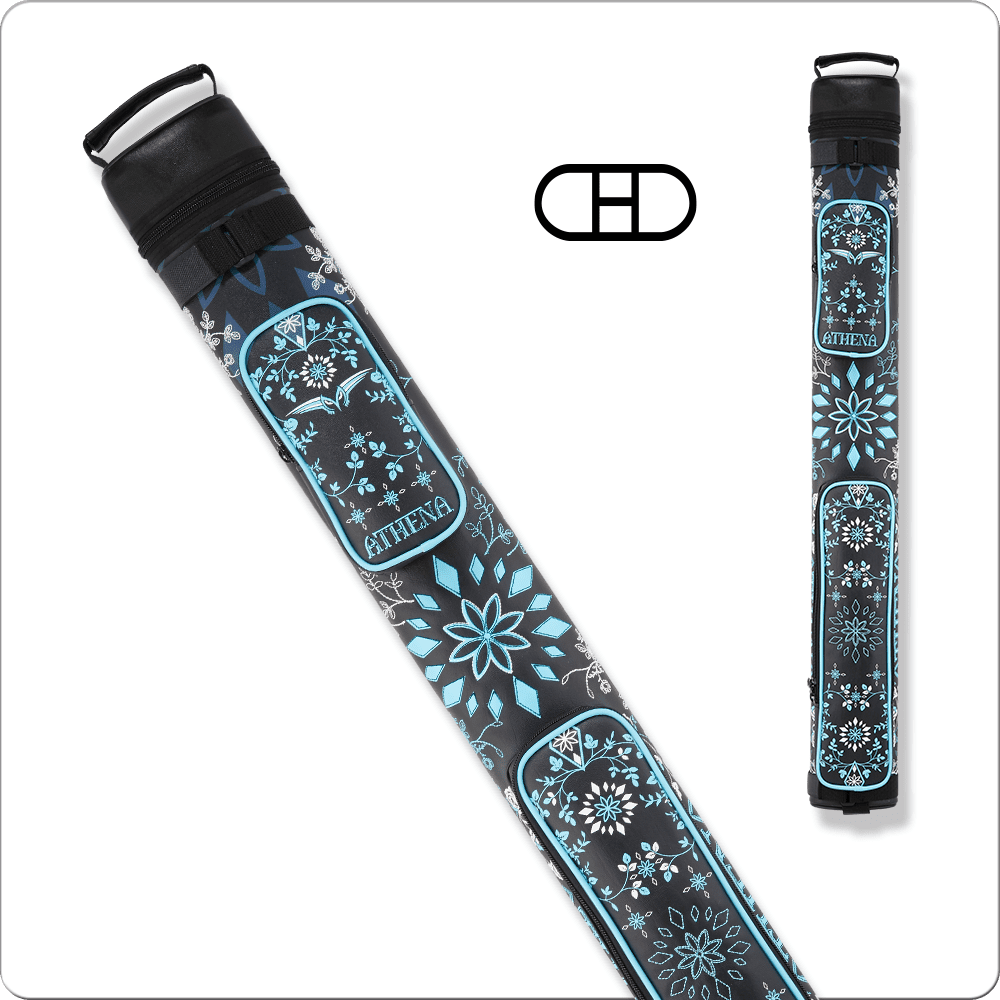 Color / Design Description : Black vinyl with baby blue, white and navy flower design with embroidered accents