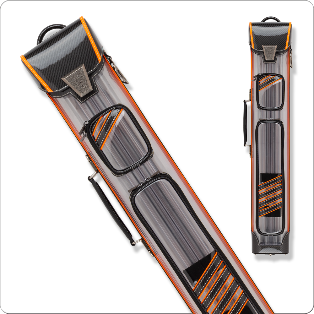 If the Laser Green LXVINT is the case that wants attention, the Transparent Black is the one that earns a second look. Carbon-and-orange accents nod toward modern carbon-shaft aesthetics, and the smoked shell pairs cleanly with darker playing cues, sneaky Petes, and break-jump combos. For a hard case that protects like a vault but does not look like one, this colorway is the quiet pick of the lineup.