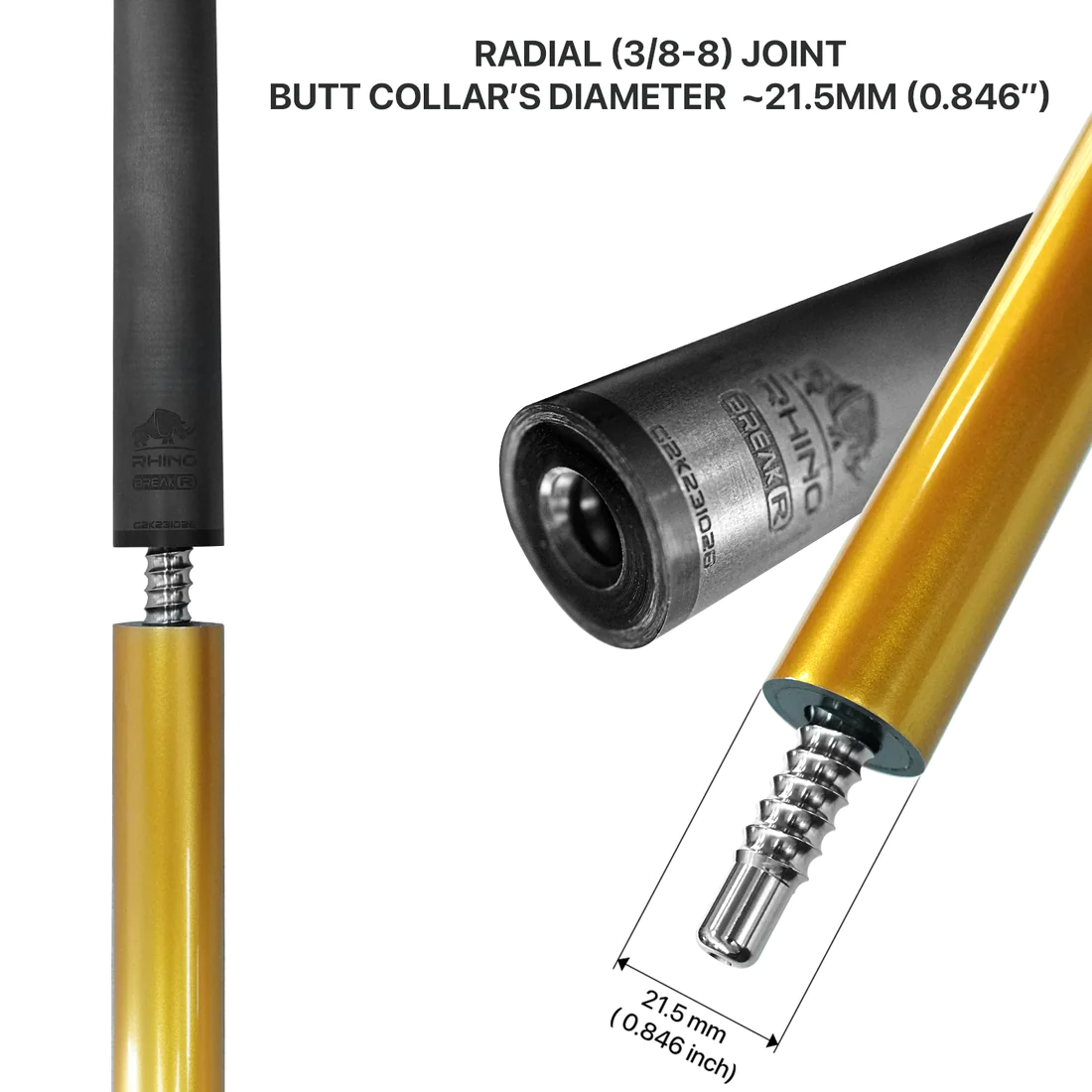 RHINO KOMET Break Cue (BUTT + SHAFT) – Gold. Professional pool cue for serious players. Features quality construction and precision balance for improved accuracy.