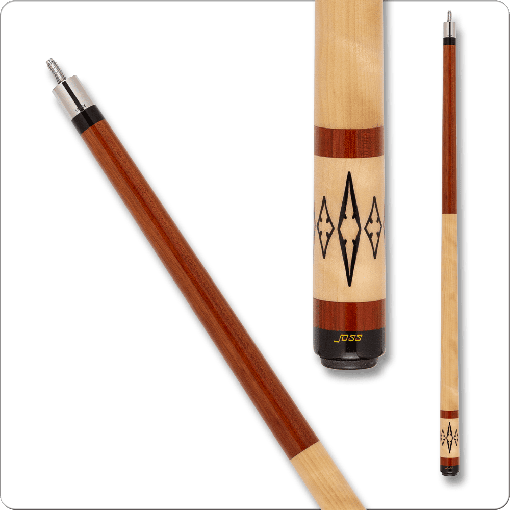 The JOS74 features Joss’s signature attention to detail with beautiful exotic wood accents, precise inlay work, and a finish that showcases the natural beauty of the materials. Each Joss cue has its own personality — the wood grain patterns ensure no two are exactly alike.