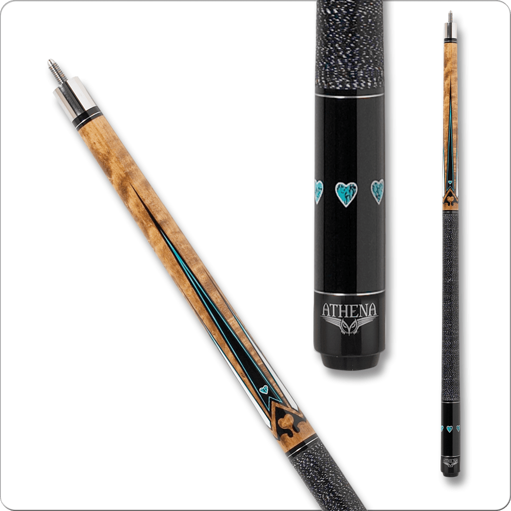Athena ATH04 pool cue featuring 28 1/2″ hard rock maple, 10 – 12″ pro taper shaft. women-specific 12.5mm shafts.