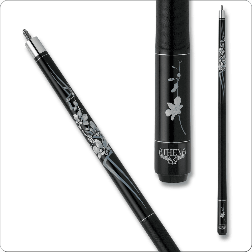 Athena pool cues are designed specifically for women players, featuring optimized sizing and stunning artistic designs. The Athena ATH32 features 29″ Hard rock maple, 10-12″ Pro taper shaft, Black Irish linen wrap for exceptional playability. The traditional Irish linen wrap offers excellent grip and moisture absorption during extended play. An excellent choice for players developing their skills and building consistency.